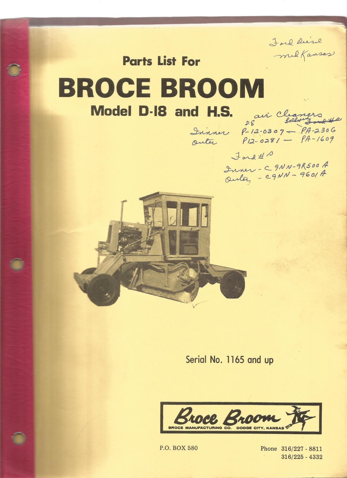 Broce Broom Model D 18 And H S Parts Manual Ebay